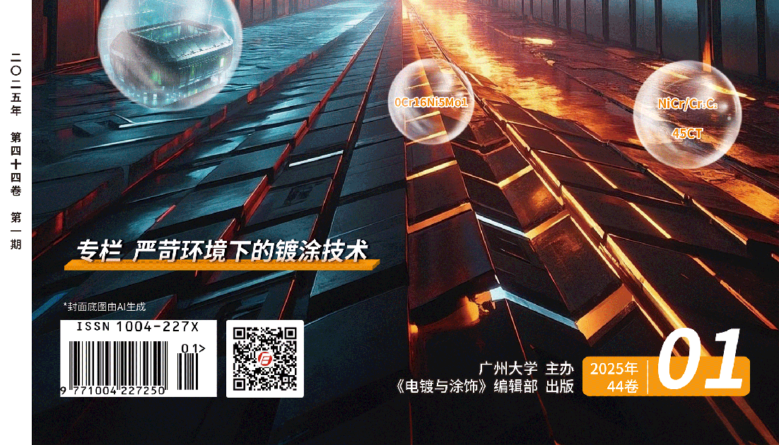 LU Kecheng;YANG Zhanhua;YANG Hongchi;ZHAO Qizhong;LAI Huajun;GAN Weijiang;XU Zebing;CHEN Zhiwu;MO Ran;HAO Chenggang;WANG Zhongmin;Guangxi Academy of Sciences;[Objective] To improve the corrosion resistance of 5083 aluminum alloy, a superhydrophobic and antibacterial composite coating was fabricated on its surface. [Method] The aluminum alloy was treated by micro-arc oxidation initially, and then sprayed with an epoxy paint containing silane-modified TiO2 and ZnO nanoparticles, forming a ca.400 μm-thick composite coating. The surface morphology and phase constitution of the micro-arc oxidation film and composite coating were examined using scanning electron microscope(SEM) and X-ray diffractometer(XRD), while the corrosion resistance, hydrophobicity, and antibacterial performance of the coating were tested by potentiodynamic polarization measurement, contact angle measurement, and plate count method. [Result] The composite coating prepared at a TiO_2-to-ZnO mass ratio of 1:1 showed the optimal corrosion resistance with a water contact angle up to 164.12° and a sliding angle as low as 2.10°. The antibacterial rates of the composite coating against Escherichia coli, Staphylococcus aureus, and Pseudomonas aeruginosa were 99.32%, 99.85%, and 91.17%, respectively. [Conclusion] The combination of micro-arc oxidation and nanocomposite coating technologies greatly enhances the corrosion resistance, hydrophobicity, and antibacterial performance of 5083 aluminum alloy.